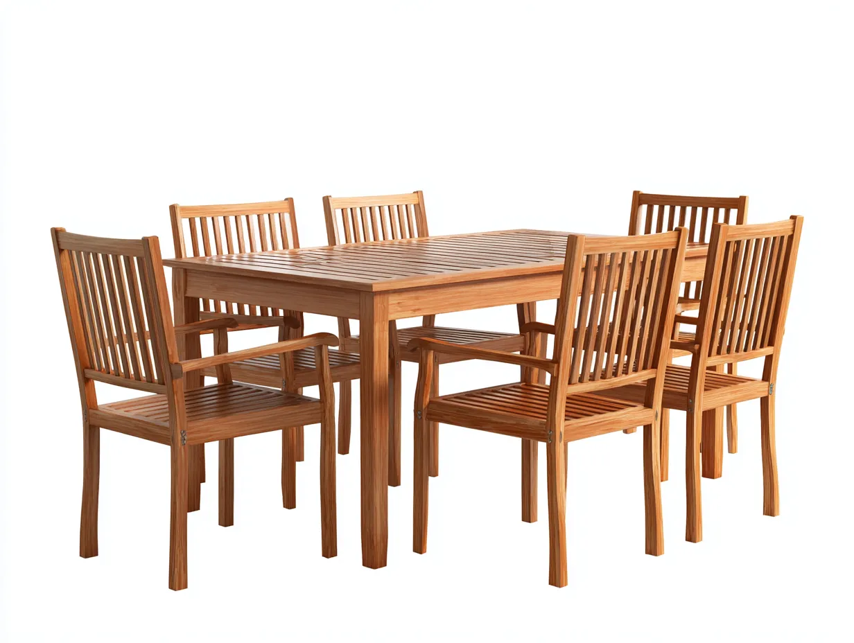 Die Tischfläche bietet ausreichend Platz für Familienessen, Gartenfeste oder entspannte Treffen im Freien. Die Gartenstühle unterstützen eine angenehme Sitzhaltung und ergänzen das Set mit einer klassischen Holzstruktur. Durch das abgestimmte Design entsteht ein harmonisches Gesamtbild für den Outdoor-Essbereich.